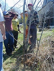 After three or four locations we estimated a spot where the bearings crossed and walked to the location. Here I instructed the scouts in fox hunting etiquette. Among other things this includes never revealing the location when you think you spot it until every one gets a chance. Even though we were within ten feet at this point no one found it accidentally. After another half dozen tries from within ten feet the location of the fox was revealed. A couple of scouts were able to correctly identify the disguised transmitter, which was remarkable as there was other "junk" around and they had no idea at all what they might be looking for.