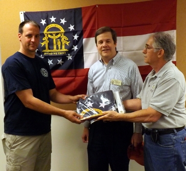 I had observed the Georgia flags at most of Morgan County’s Fire Station locations to be faded and very worn.  Knowing that my state legislator, Rep. Doug Holt (R- GA 112) may have access to a supply of flags, I contacted him for a “donation”.  Asking how this could be arranged, invited him to FD 2012 at the Morgan County Public Safety Complex EOC/EMA and he could bring the flags along.  The Morgan County Fire Chief, Mark Melvin, had also been included in an email PR list I used to invite local officials...and he accepted.